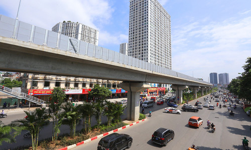 Ở dải phân cách dưới gầm đường sắt trên cao, trước đó đã có hai tầng cây cảnh, được trồng cách đây khoảng gần một năm. Nay Hà Nội trồng thêm cây cau cảnh thì tại đây có ba tầng cây canh.
