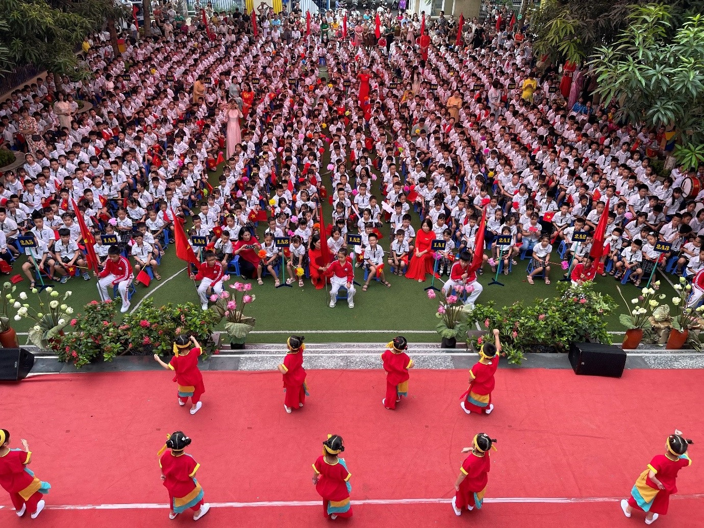 Bài phát biểu của nhà giáo Phạm Thanh Hương - Hiệu trưởng nhà trường gửi gắm những lời chân thành và đầy nhiệt huyết, thay mặt cho toàn thể đội ngũ giáo viên của trường gửi tới các bạn nhỏ đáng yêu. Sau những lời dặn dò ân cần, cô Thanh Hương đã gióng hồi trống đầu tiên, báo hiệu năm học mới chính thức bắt đầu.