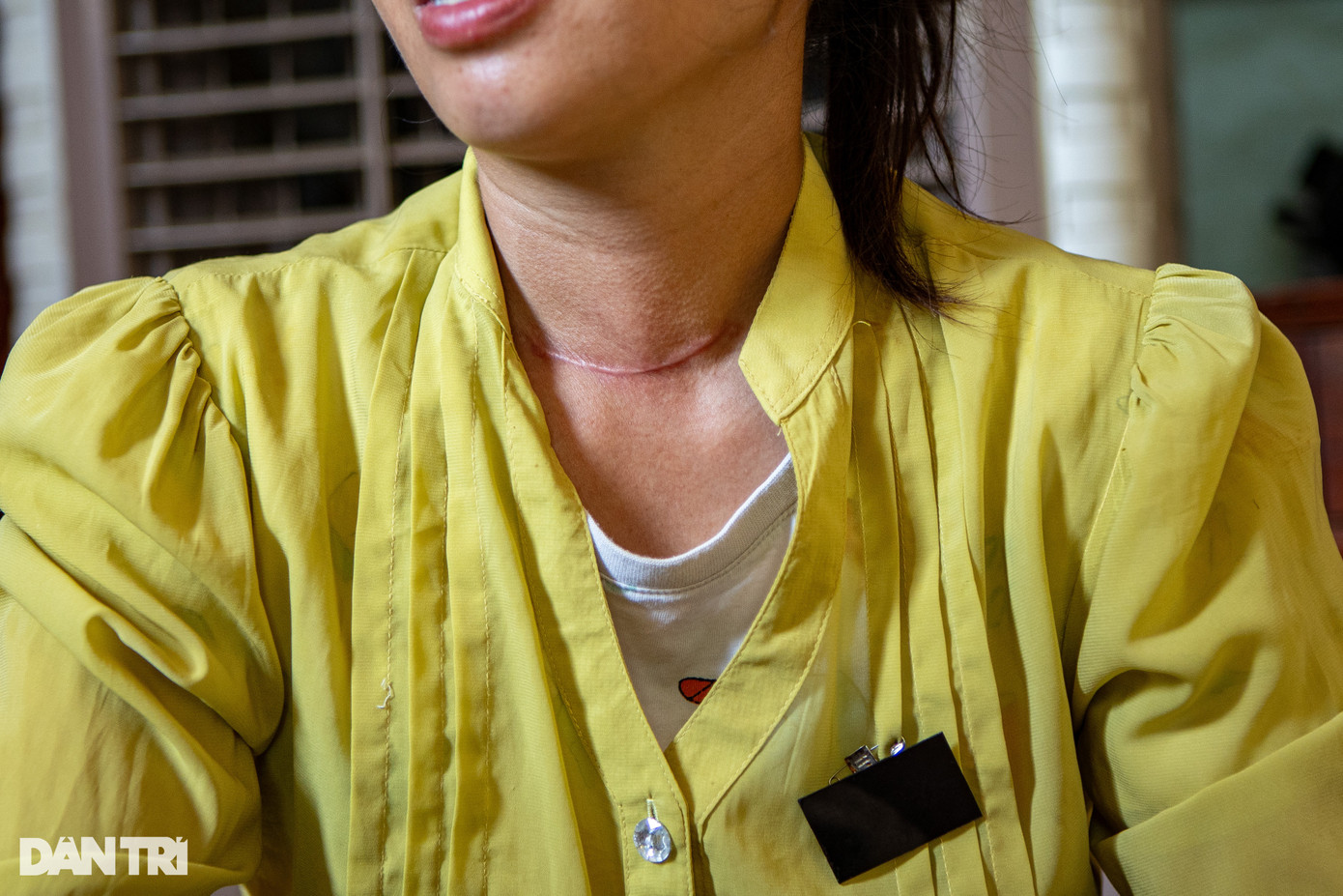 Vết mổ điều trị ung thư trên cổ chị Hòa (Ảnh: Minh Nhân).