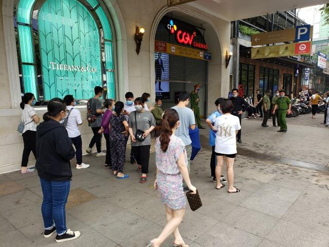 | Lực lượng chức năng phong tỏa phía bên ngoài cửa hầm Trung tâm thương mại Tràng Tiền (Ảnh: Xuân Huy). |
