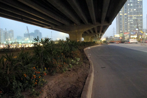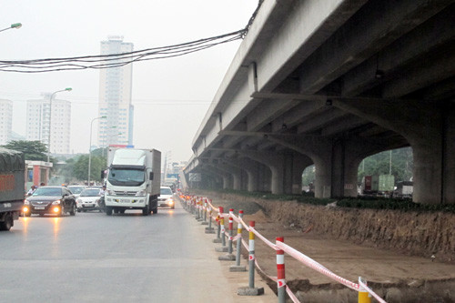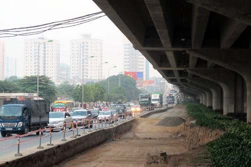 Để giải quyết tình trạng ùn tắc tại một số 'điểm đen', Hà Nội đã tiến hành xén vỉa hè, thảm cỏ tại các tuyến đường: Phạm Hùng, Khuất Duy Tiến, Trần Duy Hưng, đường gom Đại Lộ Thăng Long... để mở rộng mặt đường.