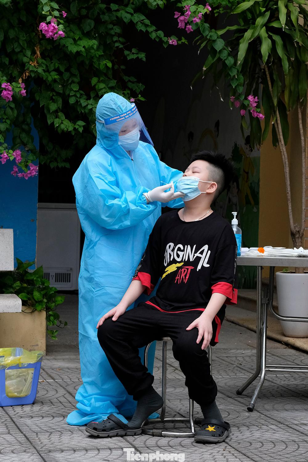 Điểm lấy mẫu Trường tiểu học Giáp Bát (120 đường Giáp Bát), lực lượng y tế tiền hành lấy khoảng 500 mẫu xét nghiệm cho người dân.
