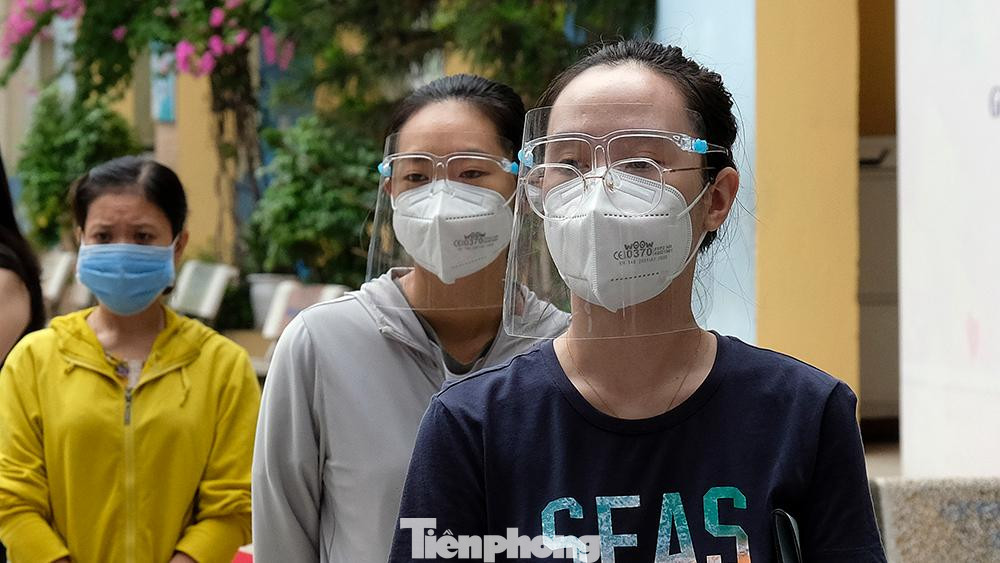 Đây là địa điểm có không gian rộng nhất nên mọi người đứng chờ lấy mẫu giữ đúng khoảng cách an toàn phóng chống dịch.