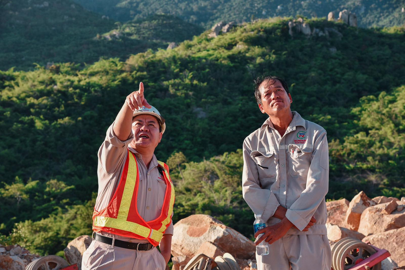 Theo ông Vũ Đình Tân, Giám đốc Công ty TNHH Điện mặt trời Trung Nam-Thuận Nam cho biết gian nan nhất là việc thi công đường dây 500 kV mạch kép đấu nối trạm biến áp (TBA) 500kV Thuận Nam vào TBA 500kV Vĩnh Tân nối từ xã Phước Minh (huyện Thuận Nam, tỉnh Ninh Thuận) đến xã Vĩnh Tân (huyện Tuy Phong, tỉnh Bình Thuận). Nhiều trụ điện của đường dây 500 kV được thi công trên núi cao, địa hình hiểm trở. Đi lại khó khăn, lại mất hàng giờ leo núi mới đến được địa điểm thi công nên nhiều kỹ sư, công nhân quyết định dựng lán trại và bám trụ trên núi đá. Ban ngày họ phơi mình dưới ánh nắng như thiêu đốt. Và, khi màn đêm buông xuống, nhiều người co ro trong cái rét thấu xương để công trường thi công đường dây 500 kV trên dãy núi ngăn cách hai tỉnh Bình Thuận – Ninh Thuận suốt mấy tháng ròng rã luôn sáng rực ánh điện.