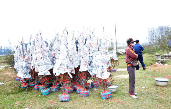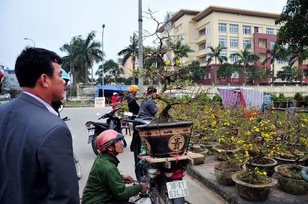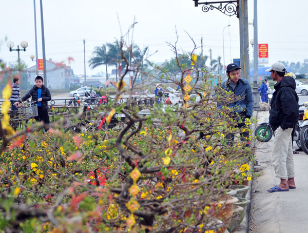 Dọc tuyến đường Xô Viết Nghệ Tĩnh, TP Hà Tĩnh, các chủ vườn đã dựng hẳn cả rạp, lều chõng để bày bán các cây đào, mai, quất… từ nhiều ngày nay. Người dân cũng tấp nập xuống phố để chọn cho mình cành đào ưng ý để về chơi Tết.