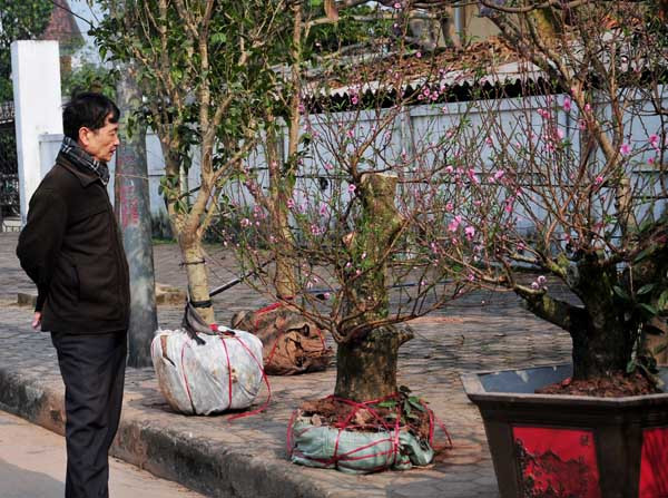 Theo khảo sát của PV Tiền Phong, giá đào, mai năm nay rẻ hơn rất nhiều các năm trước. Bình quân mỗi cành đào lớn và đẹp có giá từ 400 - 700 nghìn đồng/cành. Ngoài ra, những cây mai với nhiều tư thế đẹp có giá từ 1-2 triệu đồng.