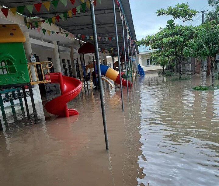 Một điểm trường mầm non trên địa bàn huyện Hương Sơn nước ngập sâu.