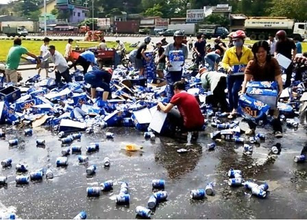 Trước đó, trưa 4/12, anh Hồ Kim Hậu điều khiển xe tải biển số 79N –1348 chở 1.500 thùng bia, lưu thông trên quốc lộ 1A hướng từ TPHCM đi Bình Thuận. Khi đến khu vực vòng xoay Tam Hiệp thì xe bị bung thùng khiến khoảng 1000 thùng bia rớt xuống đường. Lúc này, Cường dùng xe ba bánh biển số 60X5-7877 cùng với Vinh lấy đi hàng chục thùng bia. Sau khi vào cuộc điều tra, công an TP Biên Hòa đã tiến hành khởi tố vụ án, khởi tố bị can.