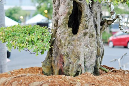Đến nay, hai cây khế đã ra hình dáng nên tôi mang xuống Hội hoa xuân Phú Mỹ Hưng, vừa để cho mọi người đam mê cây cảnh thưởng thức vừa tìm chủ mới cho nó để “gả”.