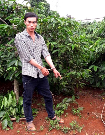 15 phút sau, thấy hai chị em bị câm điếc bẩm sinh đi ngang qua, hắn lao vào bịt miệng rồi kéo vào vườn cà phê cưỡng bức. Hai chị em dùng dép, gậy chống trả khiến gã bỏ chạy. Nghe tiếng kêu cứu, người dân chạy ra bắt "yêu râu xanh".