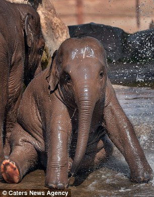 Bala và Hara là hai chúc voi mới được 2 tuổi tại vườn thú Chester (Anh Quốc)