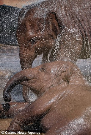 Tuần qua, thời tiết nắng nóng vẫn tiếp tục diễn ra tại Anh Quốc. Trong một góc nhỏ tại vườn thú Chester, hai chú voi Bala và Hari được phun nước và tắm mát. Nhiếp ảnh gia đã ghi lại những khoảnh khắc rất thú vị khi hai chú voi này thích thú đùa nghịch với nước như trẻ con.