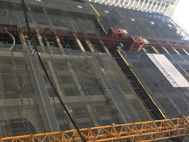 Bên trên công trình, hàng chục công nhân và thiết bị máy móc vẫn hối hả thi công. Hai chiếc thang vận liên tục lên xuống để vận chuyển vật liệu và các công nhân của công trình. Khi thấy PV ghi hình về hoạt động thi công tại dự án, một số bảo vệ dự án đã ra yêu cầu không được phép ghi hình, chụp ảnh vì “lệnh cấm” của chủ đầu tư.