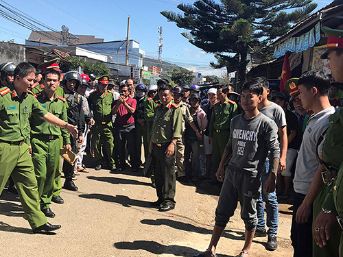 Cùng ngày, 2 đối tượng bị di lý đến căn nhà số 127/9 đường Hoàng Văn Thụ (thị trấn Liên Nghĩa, huyện Đức Trọng) để dựng lại hiện trường vụ nổ mìn “dằn mặt” con nợ gây xôn xao dư luận. Rất đông người dân địa phương đến xem thực nghiệm hiện trường