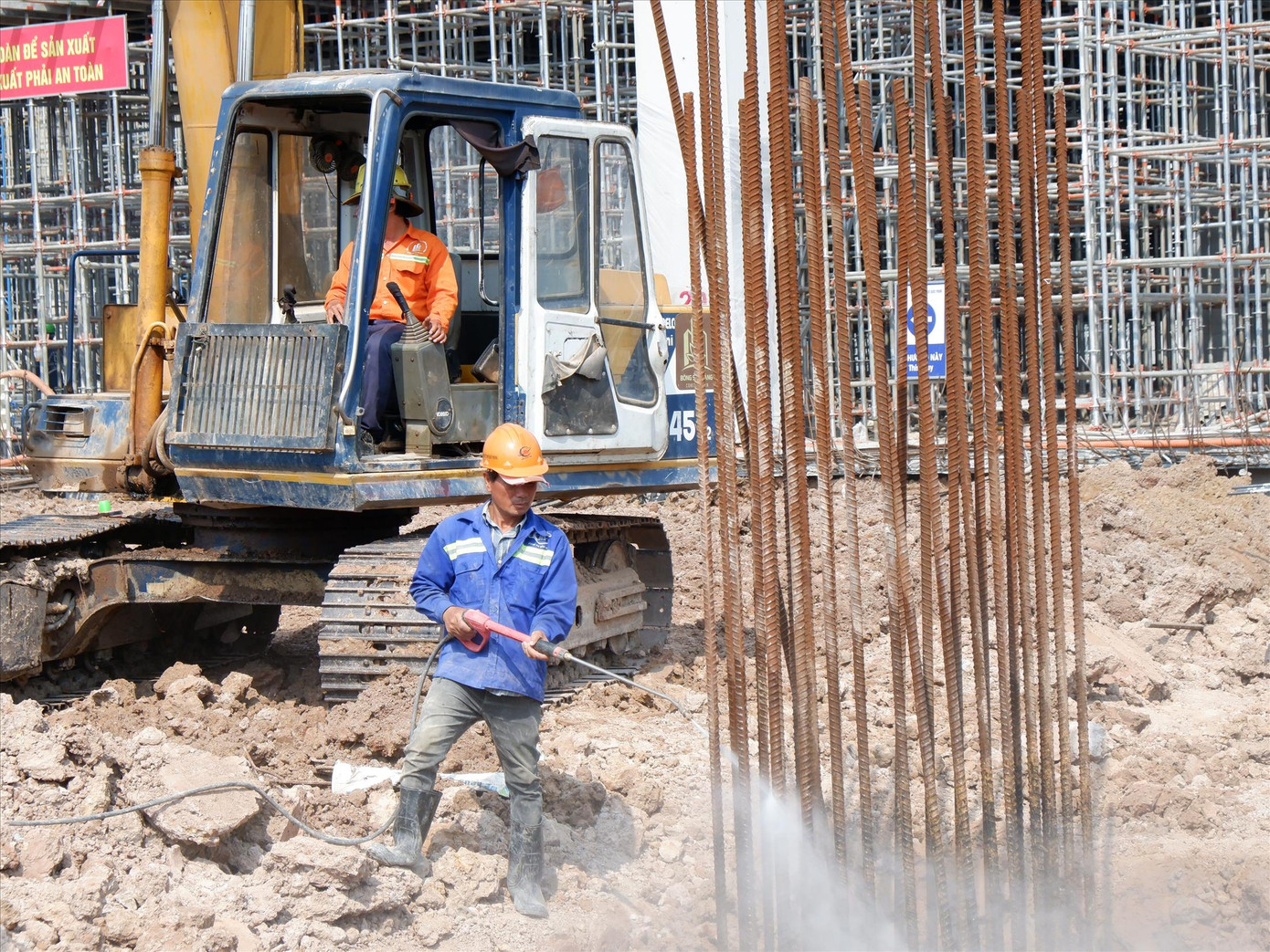 Trong khi đó, ông Nguyễn Đức Toàn - Giám đốc Ban điều hành dự án cho biết, hiện nay có khoảng 1.400 công nhân đang thi công trên công trường. Dự kiến sau kỳ nghỉ Tết Nguyên đán, nhiều công tác xây dựng được triển khai nên số lượng công nhân có thể tăng lên trên 2.000 người.