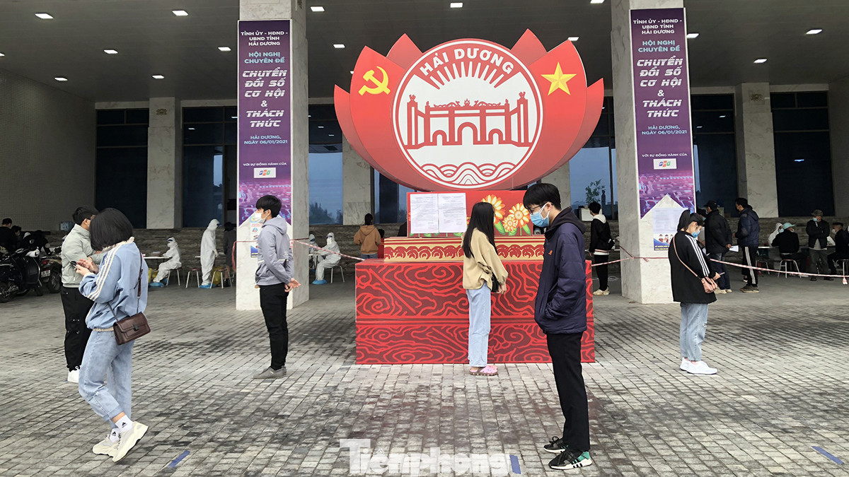 Theo ghi nhận của phóng viên, từ sớm hàng trăm lượt bạn trẻ là sinh viên các trường đại học, cao đẳng nhà ở TP Hải Dương tới xếp hàng tại Trung tâm văn hóa Xứ Đông, phố Thanh Niên (TP Hải Dương) để đăng ký xét nghiệm SARS-CoV-2.