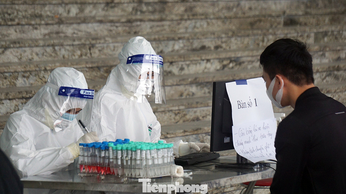 Sau khi lấy mẫu xét nghiệm, nhân viên y tế nhanh chóng trả lại giấy tờ tùy thân, phiếu hẹn nhận kết quả và rửa tay sát khuẩn và xịt khử khuẩn quanh khu vực lấy mẫu xét nghiệm.