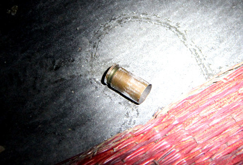 Nhiều vỏ đạn nằm lăn lóc trên nền nhà ông Lê Ngọc Bảy, ngôi nhà cố thủ đầu tiên của tay giang hồ cộm cán Nguyễn Văn Toàn. Ảnh: Hoàng Trường