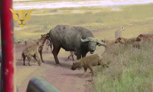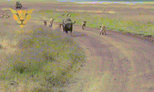 Thông thường những con linh cẩu sẽ không trực tiếp đi săn vì cấu tạo cơ thể không cho phép chúng rượt đuổi quá nhanh, sức lực lại không đủ lớn để có thể khống chế con mồi có kích thước khủng, tuy nhiên đàn linh cẩu khát máu này gặp may, chúng gặp được một con trâu rừng già yếu.