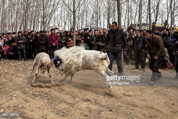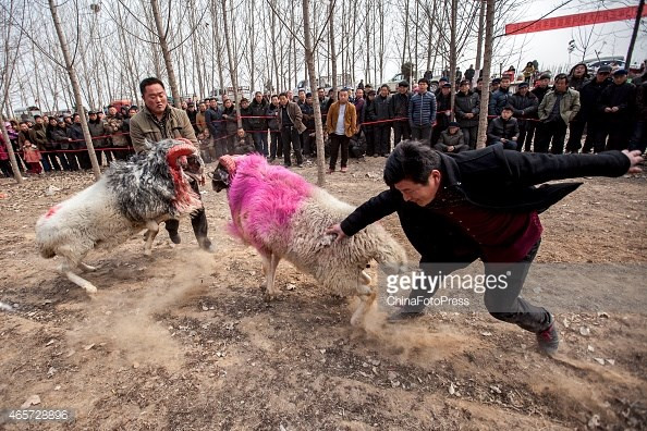 Những con cừu được đem tập trung tại một khoảng đất trống, sau đó cho chúng húc nhau dưới sự cổ vũ của rất đông người xem.