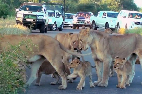 Cho tới lúc nắng đã lên cao, bầy sư tử mới rồng rắn kéo nhau vào rừng và giao thông tại con đường này mới hoạt động trở lại.
