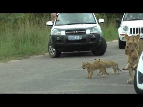 Khi họ đi tới đoạn đường, bầy sư tử vẫn đang ngủ. Họ bấm còi inh ỏi nhưng chúng vẫn không chịu di chuyển khỏi con đường.