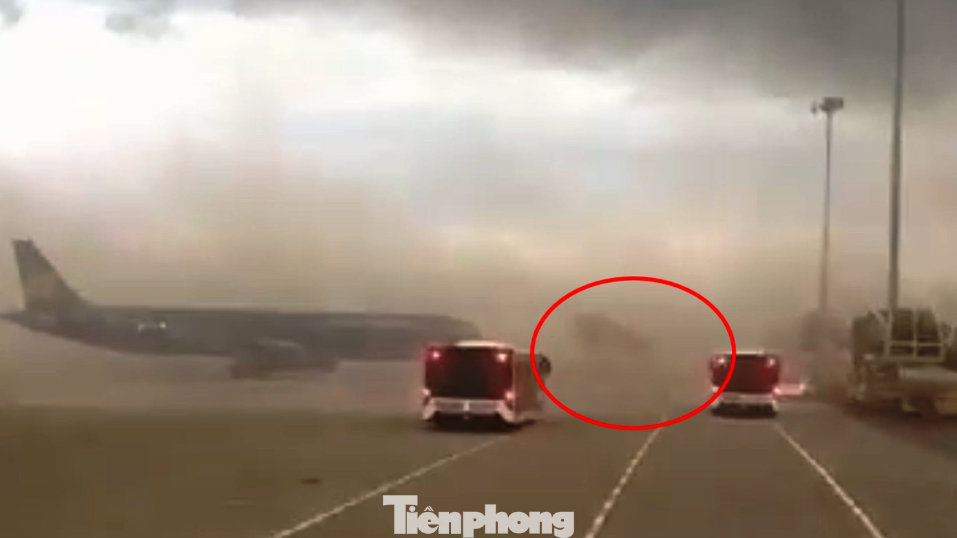 Còn theo hình ảnh, clip ghi lại, trong lúc nhiều đám bụi lớn dày đặc phía dưới di chuyển từ công trường vào khu vực sân bay, trùm lên các phương tiện giao thông, thì những đám mây đen trên bầu trời lại đứng yên.