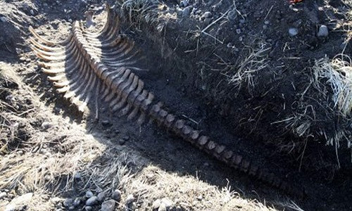 Thanh tra bảo tồn tự nhiên Maria Shitova trông thấy những chiếc xương sườn của sinh vật nhô lên trên bờ biển giống như một dãy hàng rào. Sau 8 tiếng đào xới, các nhà chức trách nhận định đây là phát hiện hiếm thấy về loài bò biển từng là động vật đặc hữu ở vùng biển thuộc các đảo nằm giữa Nga và Alaska.