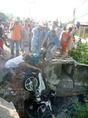 Theo thông tin ban đầu, vào khoảng 6h hôm nay, anh M. trên đường đưa con đi học qua địa điểm trên và phát hiện 1 xe mô tô nằm dưới cống nước nhà kho, nên thông báo cho mọi người. Khi tới gần cống, mọi người kinh hoàng phát hiện bên dưới chiếc xe máy sơn màu trắng mang BKS 63AC-010.53 là là thi thể của 1 nam thanh niên. Nạn nhân chết trong tư thế đang điều khiển xe, hai chân nổi trên mặt nước.