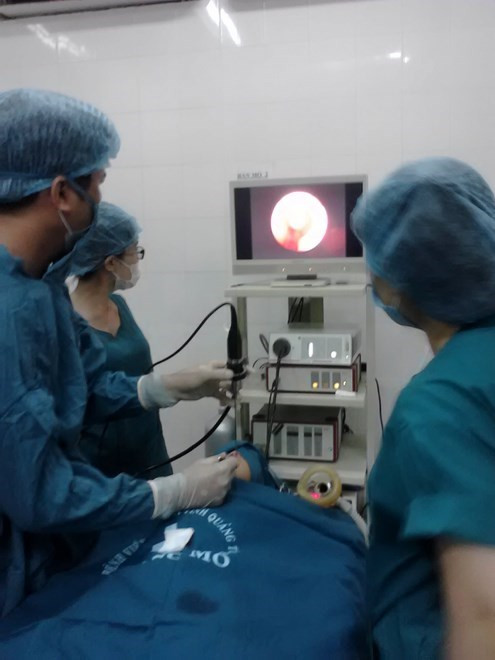 Sau khi thực hiện nội soi gắp con vắt ra, hiện cháu Hiền đã an toàn.