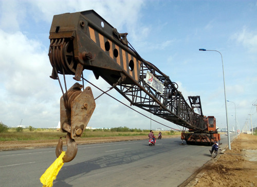 Cần cẩu hàng trăm tấn để xảy ra tai nạn. Ảnh: Xuân Thắng.
