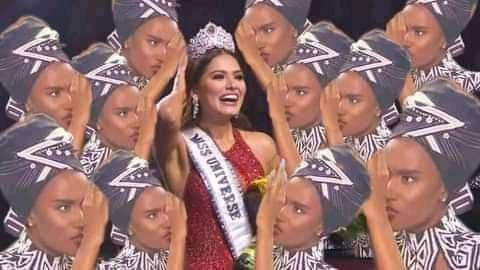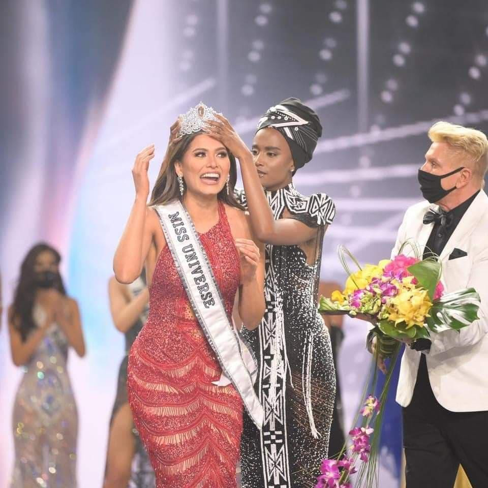 Cư dân mạng đang truyền tay nhau hình ảnh Hoa hậu Hoàn vũ 2019 Zozibini trao lại vương miện cho Tân Hoa Hậu Hoàn Vũ Andrea Meza. Có vẻ vì quá phấn khích nên đại diện Mexico đã không thể đứng yên khiến việc đội vương miện có chút khó khăn.