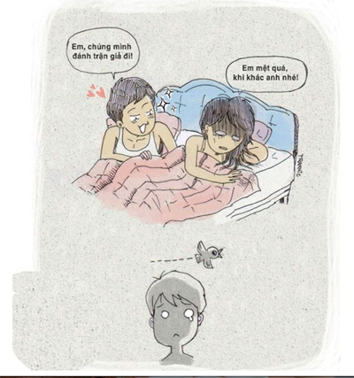 Bạn trẻ có tên Kim Mạnh Tiến vừa đăng tải loạt tranh thú vị, với nhân vật chính là một đôi vợ chồng trẻ khiến nhiều cư dân mạng thích thú.
