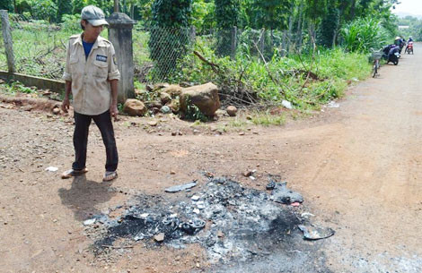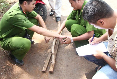 Một cán bộ tham gia khám nghiệm hiện trường cho biết, qua công tác khám nghiệm cho thấy chiếc xe máy nhãn hiệu Sirius mang BKS 47M1-376.10 mà hai đối tượng dùng đi trộm chó là xe mang biển kiểm soát giả.
