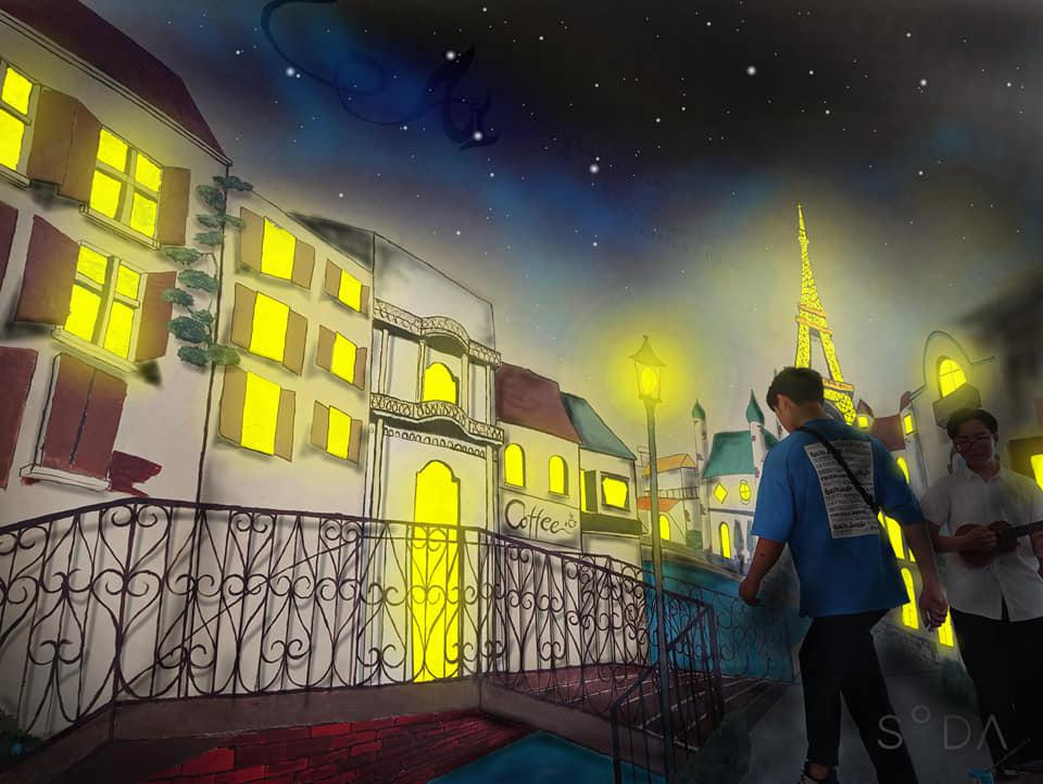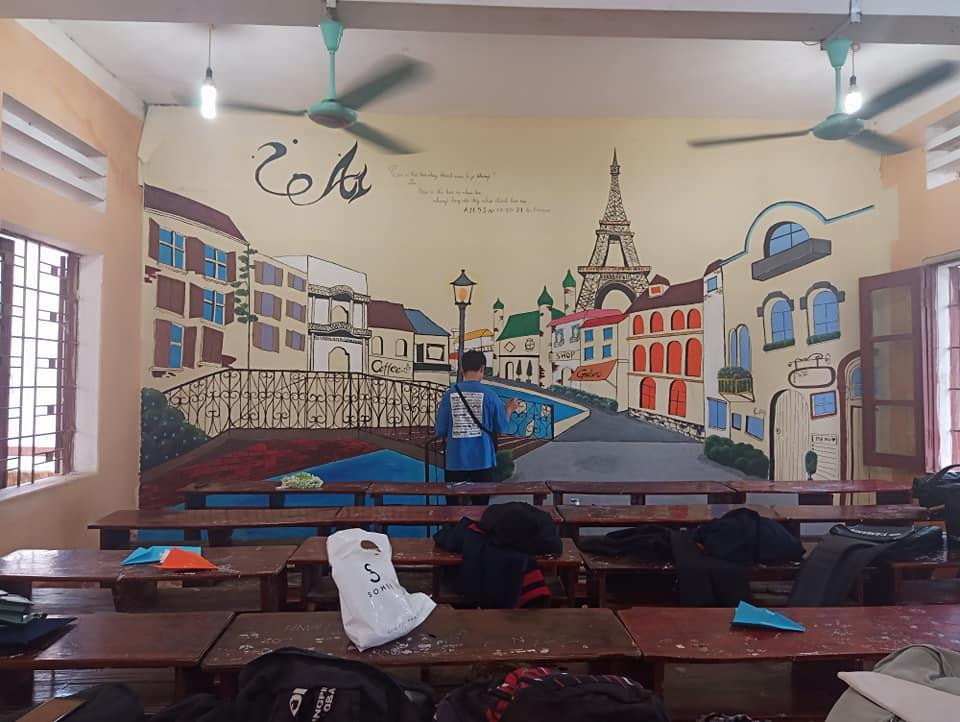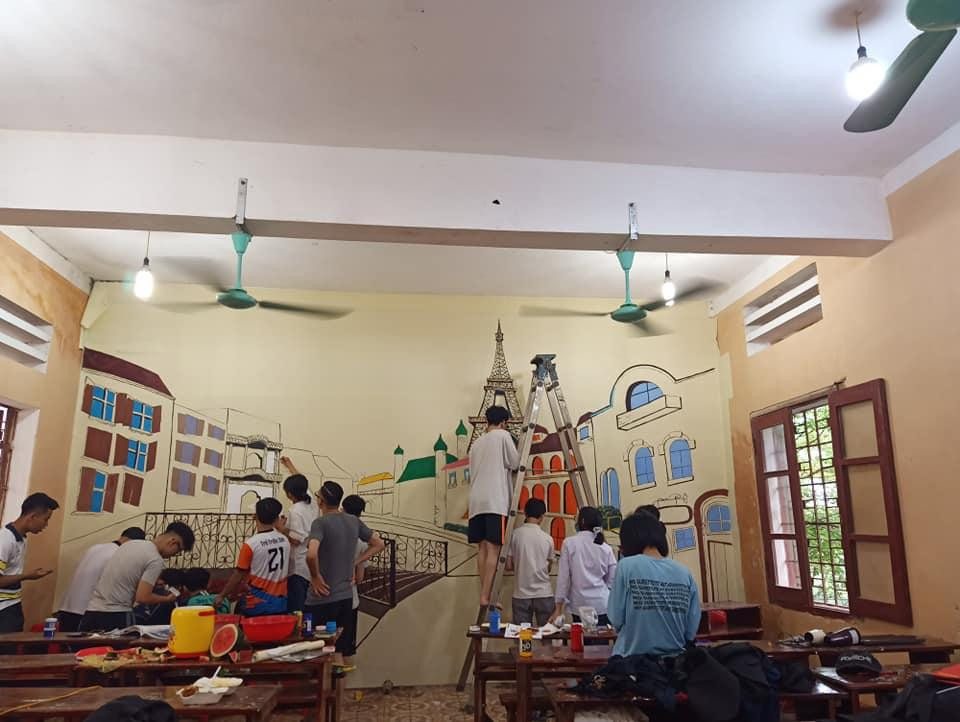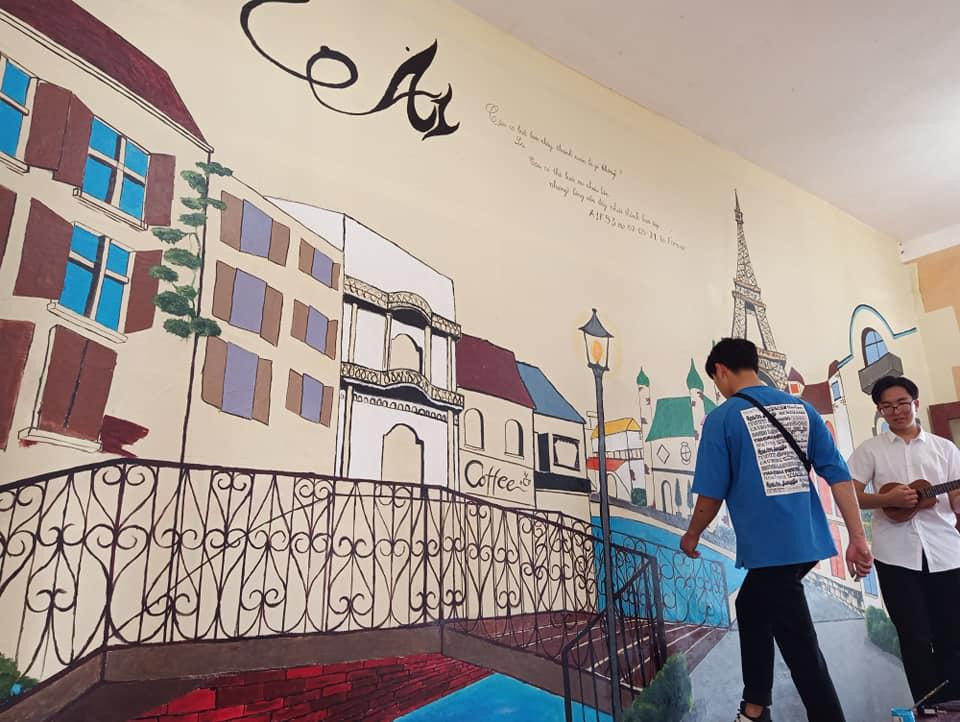 Được biết, Việt Anh và Đình Thắng đã đưa ra ý tưởng vẽ bức tranh này để giúp mọi người có thêm không gian mới trong học tập. Ban đầu 2 nam sinh chỉ nghĩ vẽ một góc Paris nhưng sau bức tường to quá nên đã vẽ hết cả một thành phố thu nhỏ lại.