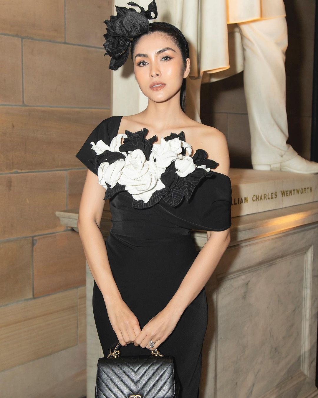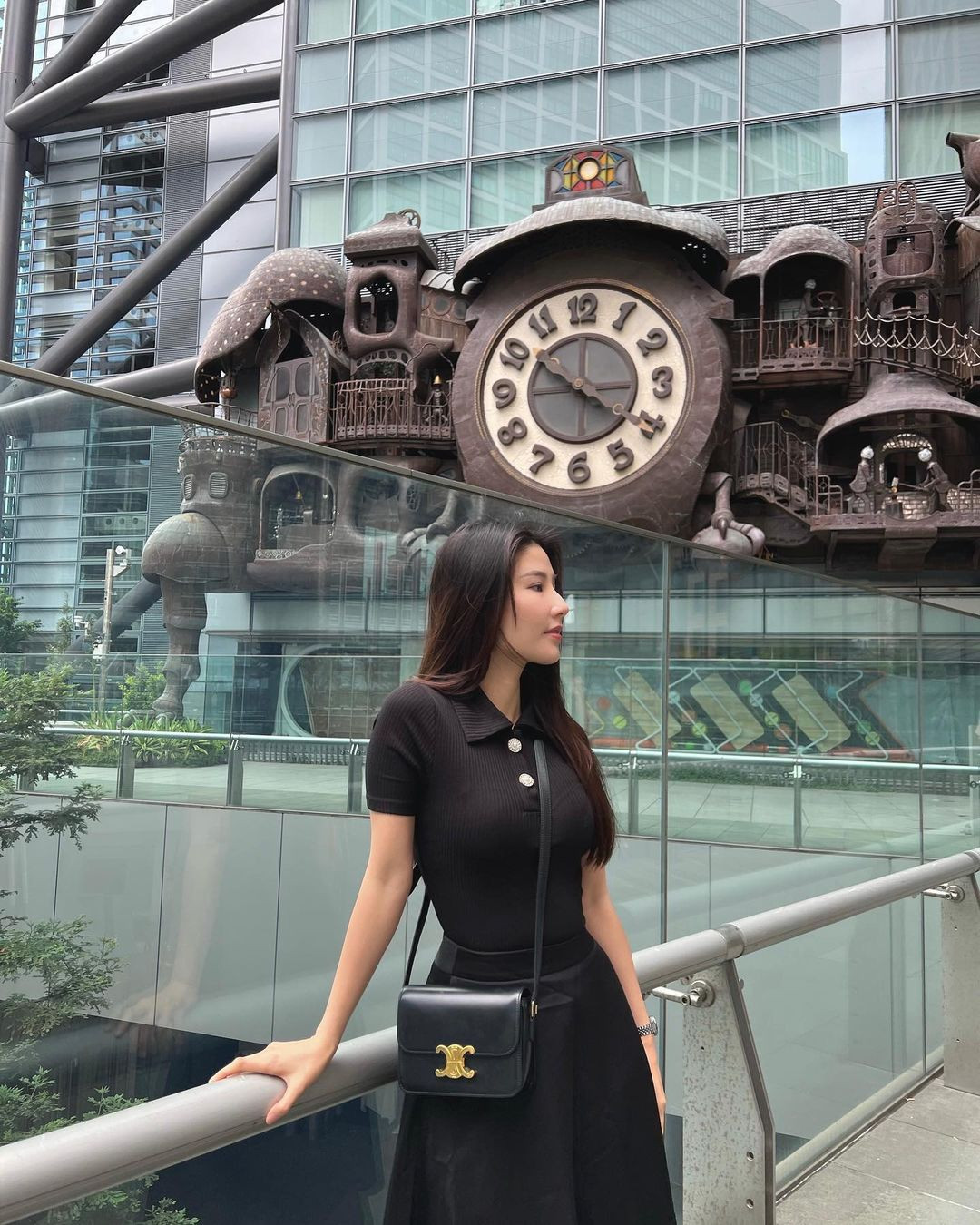 Phong cách thường ngày của người đẹp sinh năm 1990 có nhiều điểm tương đồng với “ngọc nữ” Tăng Thanh Hà. Hai nàng dâu hào môn đều chuộng tông màu đen - trắng cơ bản, tiết chế cắt xẻ, tạo điểm nhấn bằng trang sức cỡ vừa, túi xách hàng hiệu.