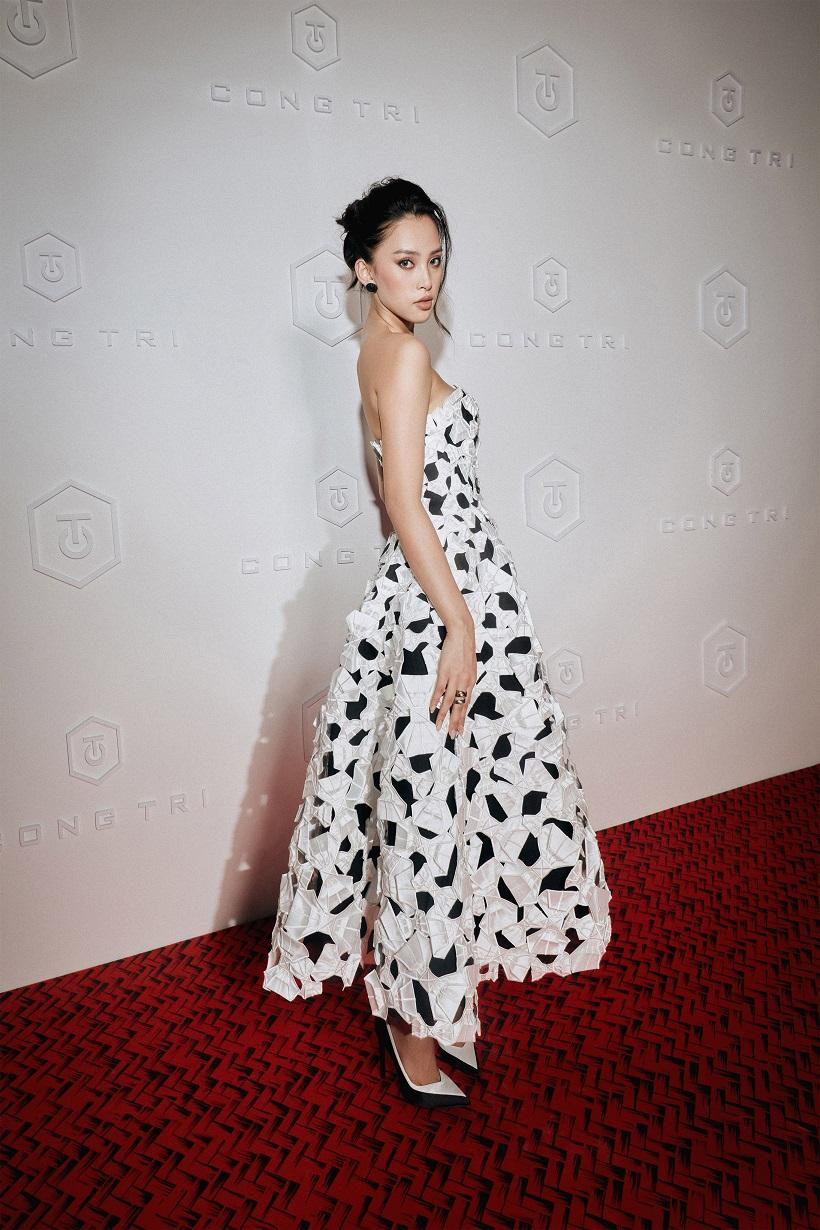 Không hở bạo hay sexy như những bộ ảnh trước nhưng thần thái "sắc lẹm" của Trần Tiểu Vy – Lương Thùy Linh ghi điểm tuyệt đối trong những bộ cánh thanh lịch và có phần quyến rũ. Họa tiết nơ và hoa thược dược là biểu tượng của nhà mốt, được Công Trí sử dụng làm điểm nhấn thị giác cho bộ sưu tập. Nếu họa tiết nơ được tạo ra từ kĩ thuật xếp origami, thì họa tiết hoa lại được xử lí từ lớp vải nguyên bản thành những lớp ren tinh xảo. Từ lớp ren độc bản này, nhà mốt CONG TRI đã sử dụng để tạo ra các thiết kế khác nhau.