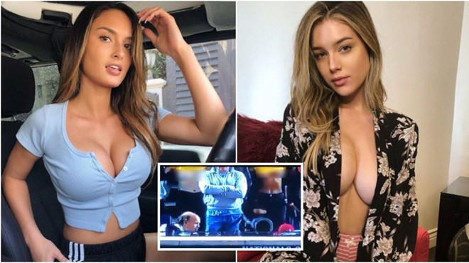 Hành động khoe ngực trần của hai người đẹp diễn ra ở trận Washington Nationals gặp Houston Astros thuộc giải bóng chày nhà nghề Mỹ (MLB) vào tháng 11 năm ngoái.