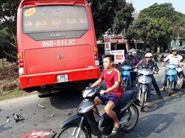 Ngoài ra, một chiếc xe ô tô 4 chỗ màu đen lưu thông trên đường qua khu vực xảy ra tai nạn đã không may va quệt vào dẫn đến hư hỏng.