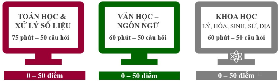 Bài thi Đánh giá năng lực học sinh trung học phổ thông (HSA) năm 2024 của ĐHQG Hà Nội gồm 3 phần: Phần 1- Toán học và xử lý số liệu (50 câu hỏi, 75 phút); Phần 2- Ngôn ngữ - Văn học (50 câu hỏi, 60 phút); Phần 3 – Khoa học (50 câu hỏi, 60 phút). Điểm tổng của bài thi là 150, thời gian làm bài chính thức 195 phút. Cấu trúc bài thi trên được triển khai từ năm 2021 trở lại đây.