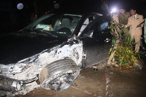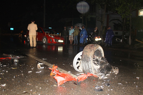 Xe ô tô biển số 74A-02549 bị móp một bên hông, một bánh xe và thân xe văng ra ngoài