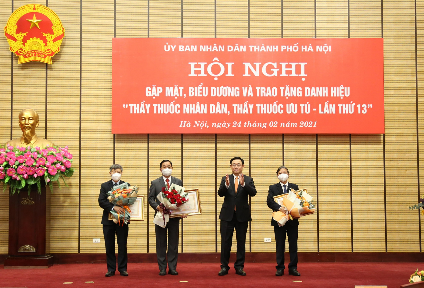 Thừa ủy quyền của Chủ tịch nước, Bí thư Thành ủy Hà Nội Vương Đình Huệ đã trao danh hiệu "Thầy thuốc nhân dân" tặng 3 cá nhân gồm Tiến sĩ, bác sĩ Nguyễn Khắc Hiền, Giám đốc Sở Y tế Hà Nội; Phó Giáo sư, Tiến sĩ Hoàng Đức Hạnh, Phó Giám đốc Sở Y tế Hà Nội; Thạc sĩ, bác sĩ chuyên khoa I Nguyễn Văn Dung, nguyên Phó Giám đốc Sở Y tế Hà Nội.