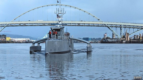 Cơ quan Nghiên cứu các Dự án Quốc phòng tiên tiến (DARPA) của Mỹ đang tiến hành thử nghiệm tàu săn ngầm không người lái Sea Hunter. Tàu có chiều dài 40 m, được thiết kế theo kiểu trimaran. Sea Hunter có thể làm nhiệm vụ theo dõi tàu ngầm đối phương trong nhiều tháng.