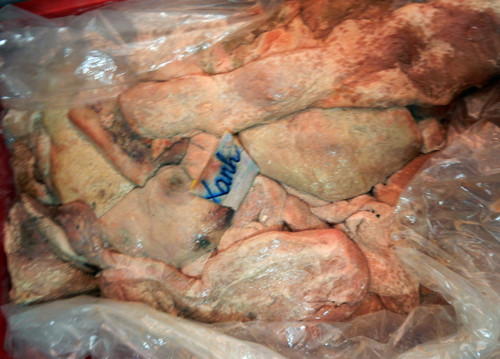 Số vú heo đang sơ chế chảy dịch, bốc mùi hôi thối; còn trong tủ đông đã đổi màu xanh, đen. Tất cả đều không có giấy chứng nhận kiểm dịch, không rõ nguồn gốc.