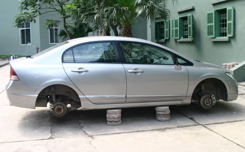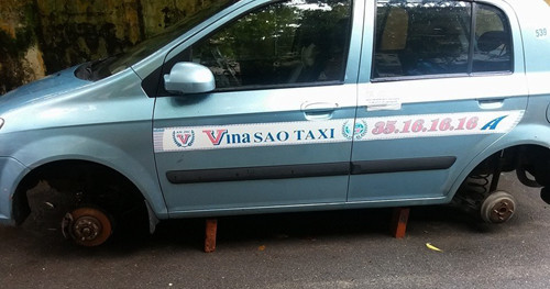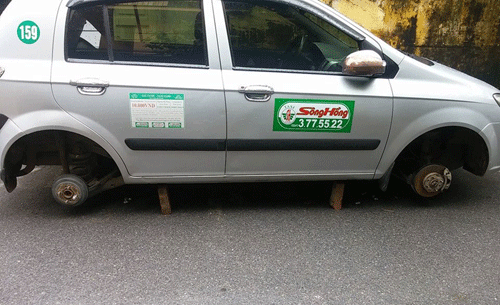 Quan sát tại hiện trường cho thấy, để thực hiện thành công hành vi trộm 4 chiếc bánh của 2 chiếc taxi này, kẻ xấu đã dùng những viên gạch xây để nâng bánh xe khỏi mặt đất, trước khi dùng cờ lê tháo ốc nơi bánh xe. Tài xế của 2 chiếc taxi này cho hay, tối 20/9, sau khi chở khách, họ đã dừng đỗ trong ngõ này để nghỉ ngơi. Nhưng do không cảnh giác nên đã để kẻ trộm lấy mất 4 chiếc bánh xe.