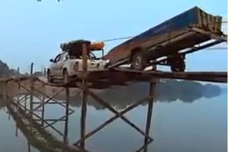 Tài xế liều mình cho ô tô qua 'cầu khỉ' chênh vênh (XEM VIDEO)