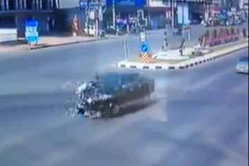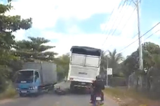 Chết thảm vì xe máy vượt ẩu xe tải (XEM VIDEO)