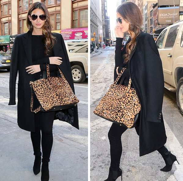 Bất chấp thời tiết giá lạnh, Candice diện váy ngắn và bốt cao tới đùi khi tới buổi phỏng vấn.