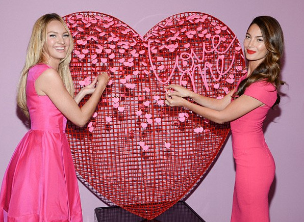 Hai người đẹp của Victoria's Secret - Candice Swanepoel và Lily Aldridge sánh đôi bên nhau trong buổi ra mắt dòng sản phẩm mới dành cho mùa lễ tình nhân năm 2015 tại New York, ngày 5/2.