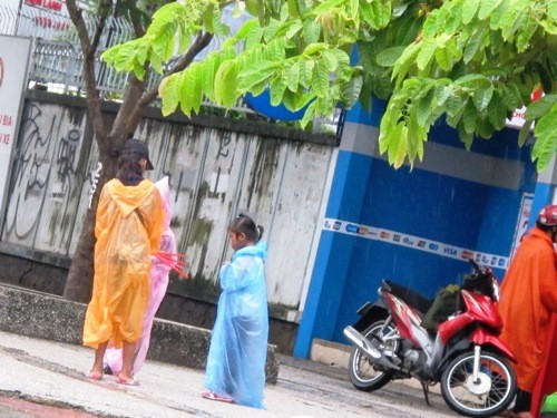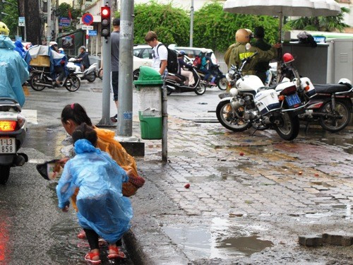 Sáng 14/9, dưới trời mưa tầm tã, 4 trẻ em từ 6 - 12 tuổi mặc áo mưa nằm tại ngã tư CMT8 - Nguyễn Thị Minh Khai (Q.1, TP.HCM) để xin tiền người đi đường. Sau khi xin được tiền thì đem vào trụ ATM gần đó đưa cho 2 thiếu nữ chừng 18 tuổi.